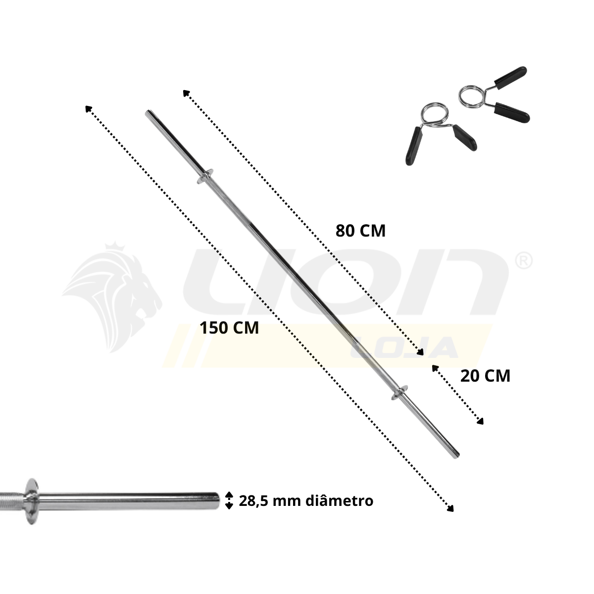 Esta Barra Maciça com Presilhas é perfeita para seu treino de musculação. As presilhas seguras e a pegada recartilhada oferecem maior segurança ao levantar pesos, evitando deslizes. Com revestimento cromado resistente, garante durabilidade e eficiência nos exercícios.