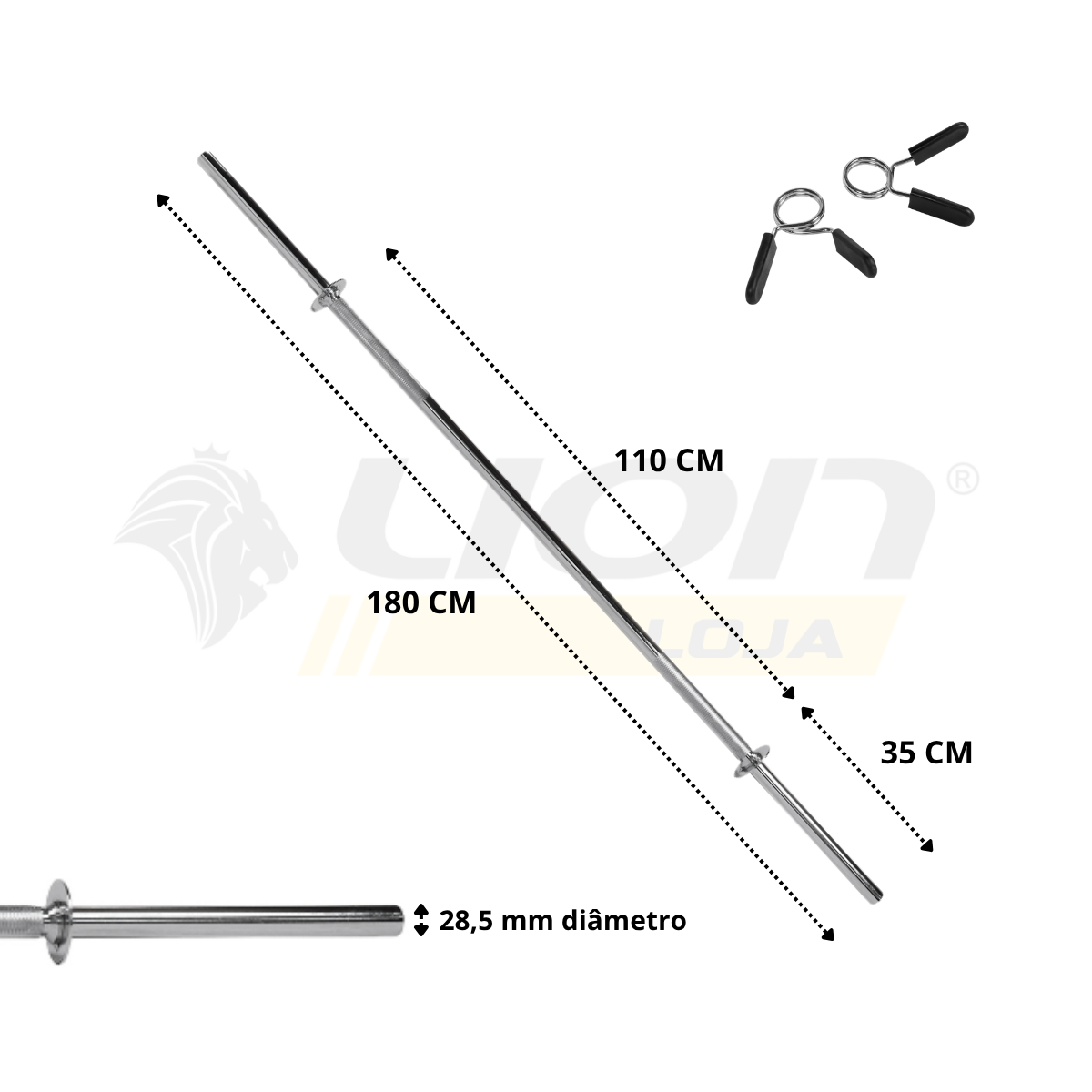 Esta Barra Maciça com Presilhas é perfeita para seu treino de musculação. As presilhas seguras e a pegada recartilhada oferecem maior segurança ao levantar pesos, evitando deslizes. Com revestimento cromado resistente, garante durabilidade e eficiência nos exercícios.
